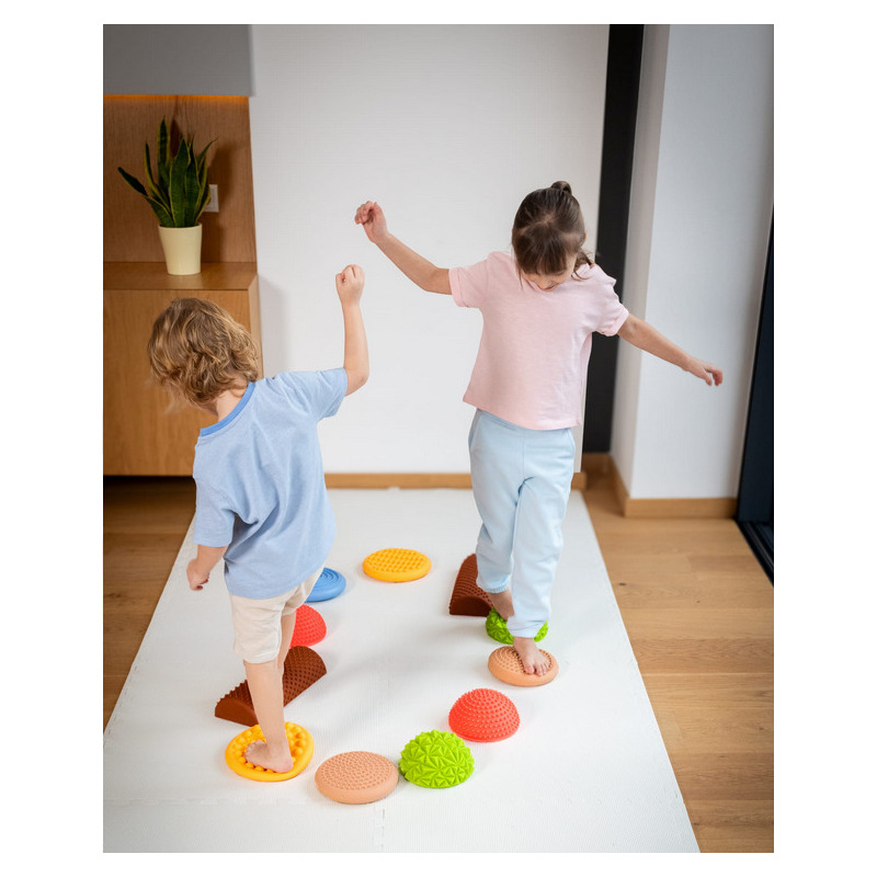 Ścieżka sensoryczna przeznaczona jest do ćwiczeń równowagi, korekcji wad postawy oraz masażu stóp. Bardzo dobrze sprawdza się podczas zabawy z dziećmi. Jest uatrakcyjnieniem zajęć grupowych.