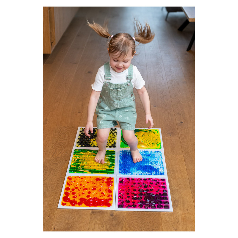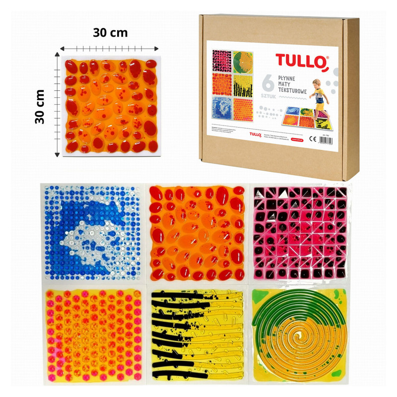 ŚCIEŻKA SENSORYCZNA fakturowe płytki z cieczą 30x30 cm zestaw 6 el. Tullo 3+