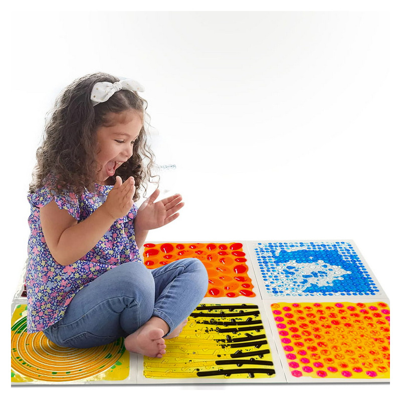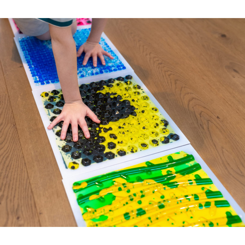 Fakturowe płytki sensoryczne z cieczą to połączenie zabawy, terapii i rozwoju – zaprojektowane z myślą o dzieciach potrzebujących wsparcia w obszarze integracji sensorycznej i motoryki.