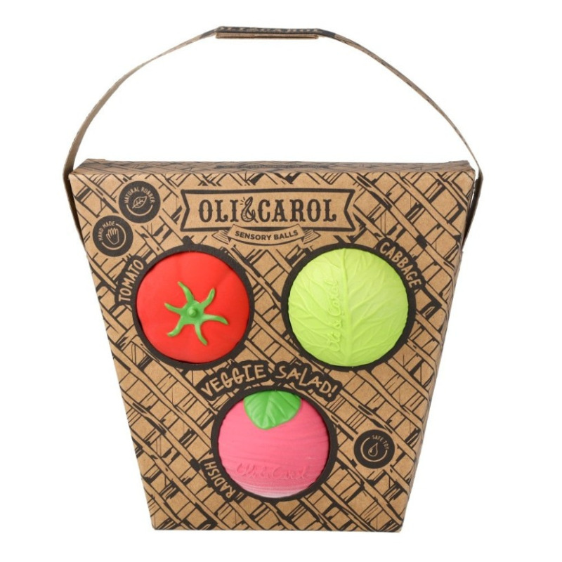 SAŁATKA JARZYNOWA kauczukowe piłeczki sensoryczne dla niemowląt Hevea Oli and Carol 0+