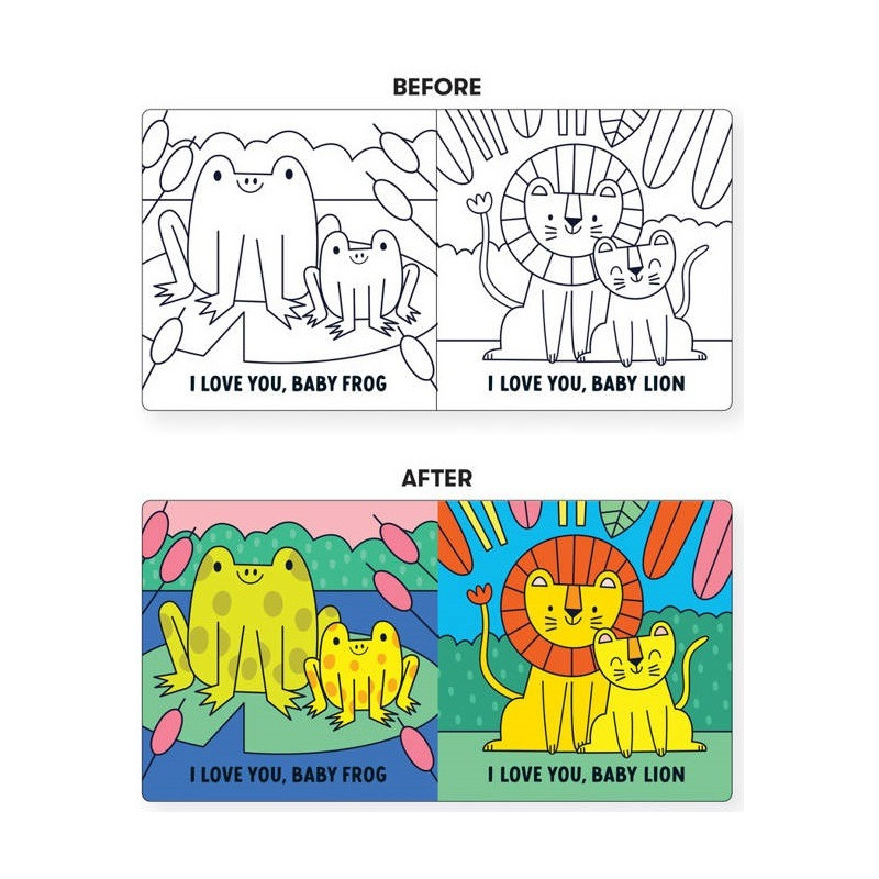 w wodzie na czarno-białych ilustracjach pojawiają się kolory!