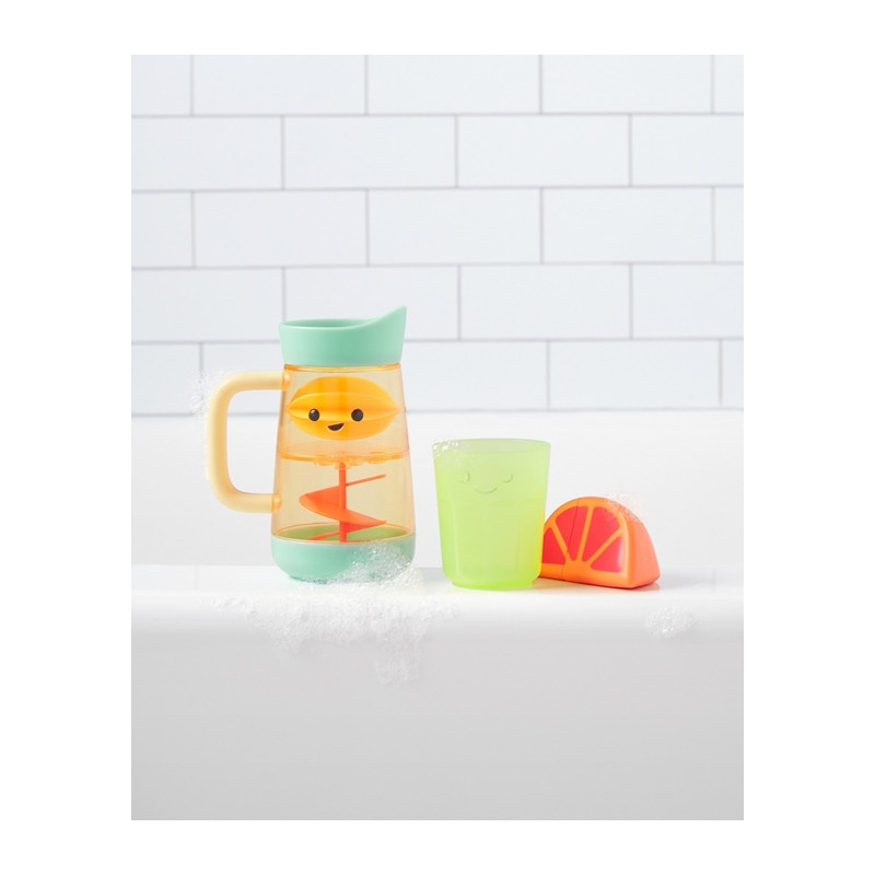 Pora na słodką kąpiel! Przygotuj lemoniadę przy użyciu dzbanuszka - obserwuj jak woda wprawia w ruch spiralę znajdującą się w jego środku. W komplecie znajdziesz dzbanek z cytryną i ruchomym elementem, pomarańczę, którą można podzielić na pół oraz kubeczek do przelewania z otworem na dnie.