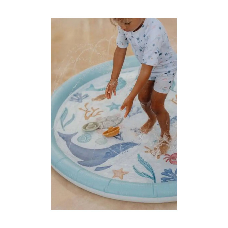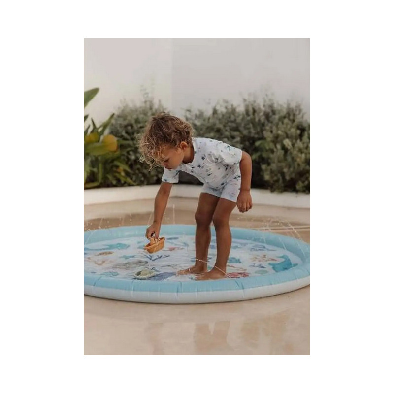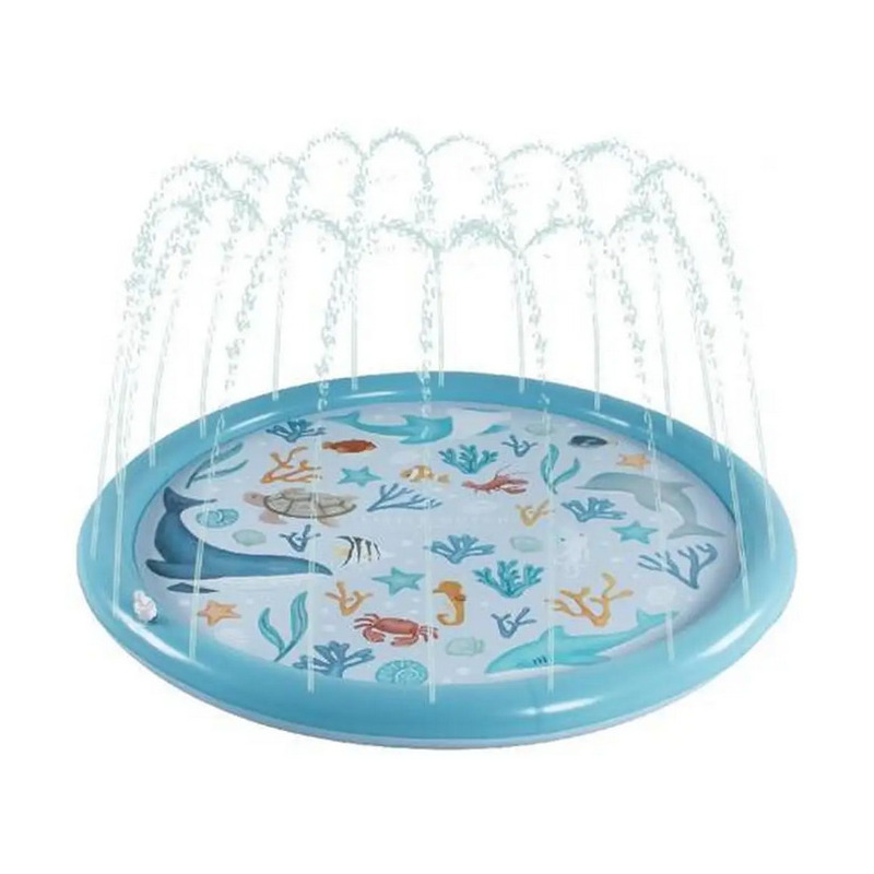 Niebieska mata do zabawy z fontannami jest pokryta pięknymi grafikami z kolekcji Ocean Dreams.
