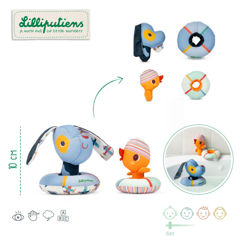 PIESEK JULES I KACZOREK GASPARD przytulanki do kąpieli Lilliputiens 6 msc+