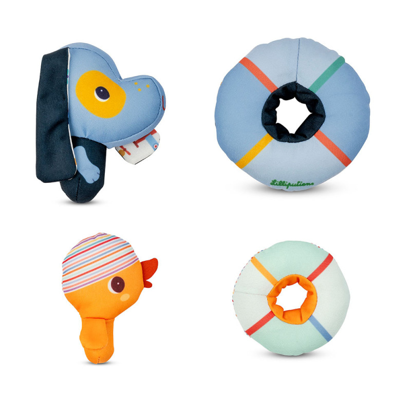 Zestaw dwóch przytulanek do kąpieli marki Lilliputiens: Piesek Jules i Kaczorek Gaspard, każdy z własnym kołem do pływania. Wykonane zostały z miękkiego, łatwego do czyszczenia i szybkoschnącego materiału. Zabawki są perfekcyjnie wykończone, z dbałością o każdy szczegół i w pełni bezpieczne dla dziecka.