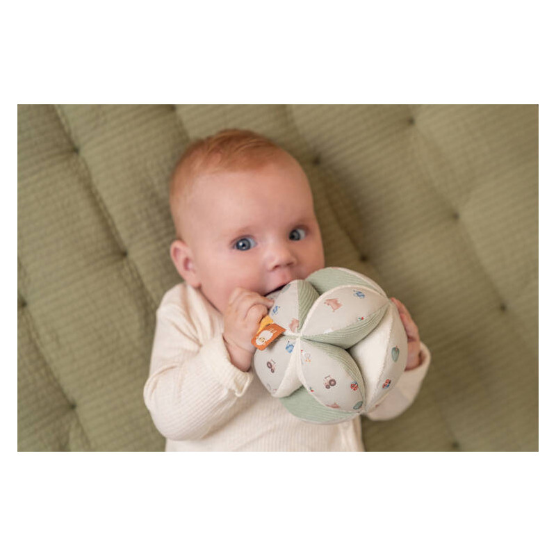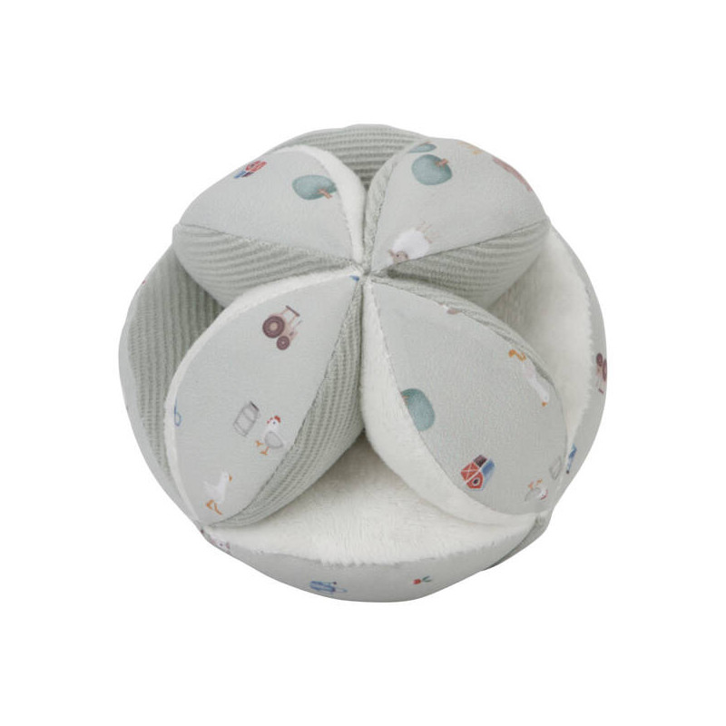 Piłeczka wykonana jest z miękkich i przyjemnych materiałów, z uroczym motywem farmy.