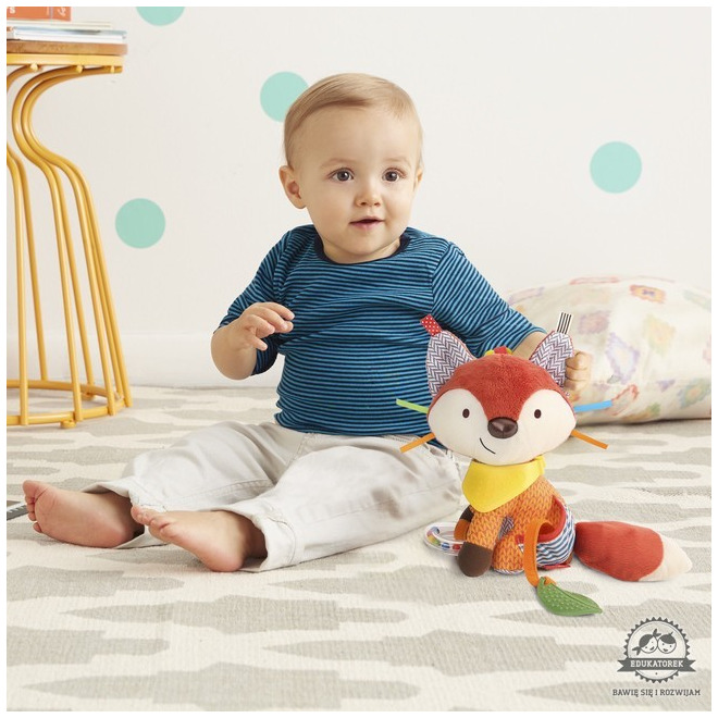 Można przyczepić do maty edukacyjnej, ramy łóżeczka, fotelika samochodowego lub wózka.