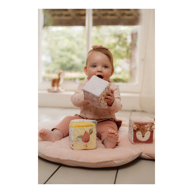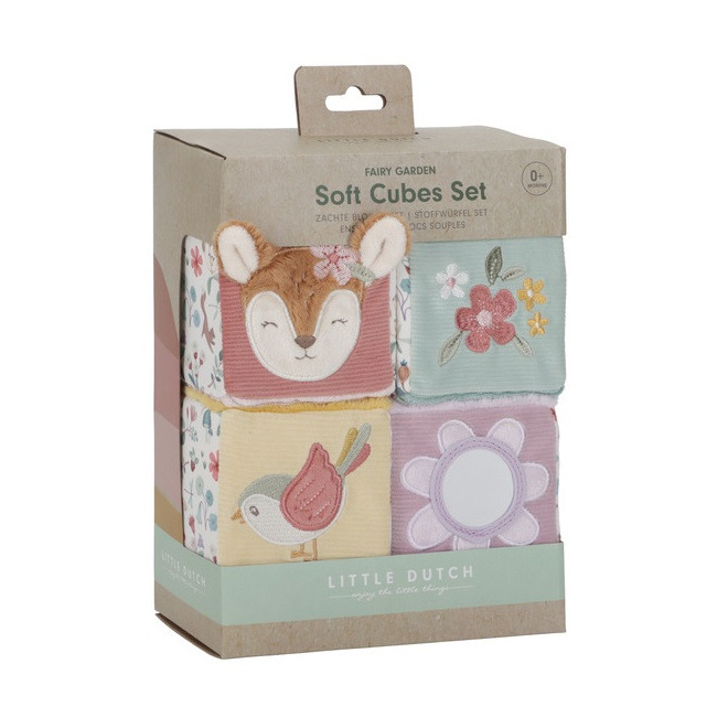 Cztery miękkie kostki aktywizujące z kolekcji Fairy Garden