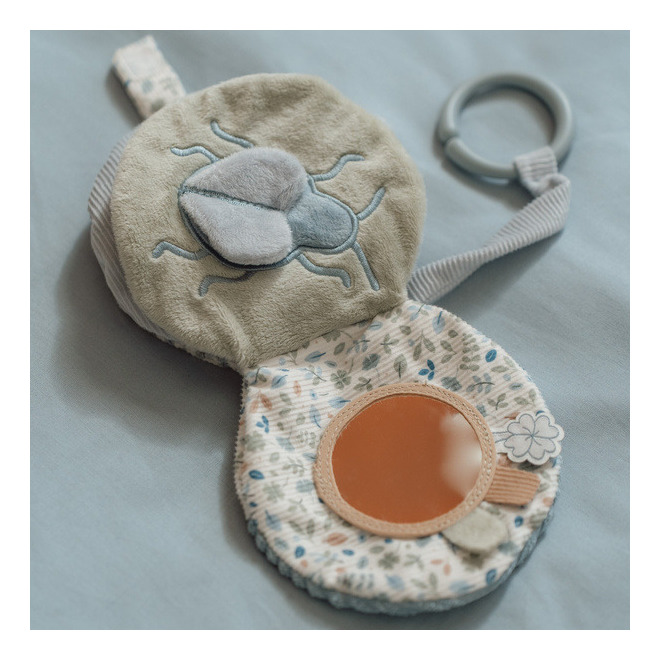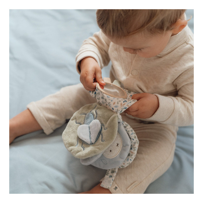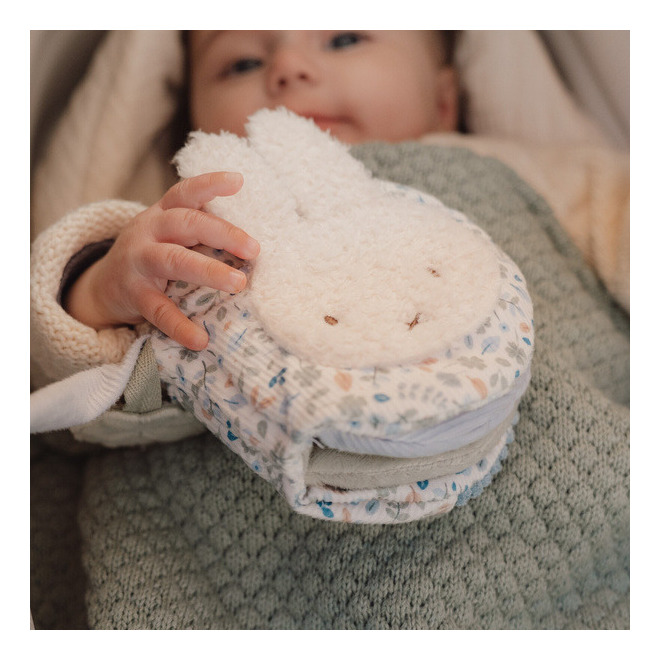 Książeczka aktywizującą z kolekcji Lucky Leaves od Little Dutch x Miffy zawiera w środku różnorodne faktury materiału, dzięki którym maluszek może rozwijać swoje zmysły. Książeczka posiada uwielbiane przez dzieci lustereczko, metki i szeleściki.