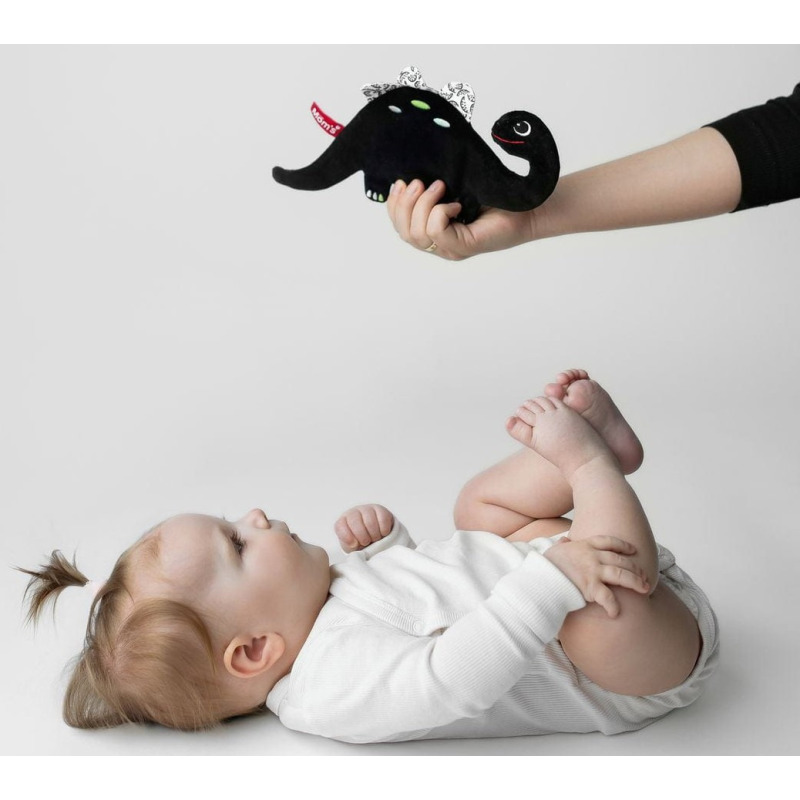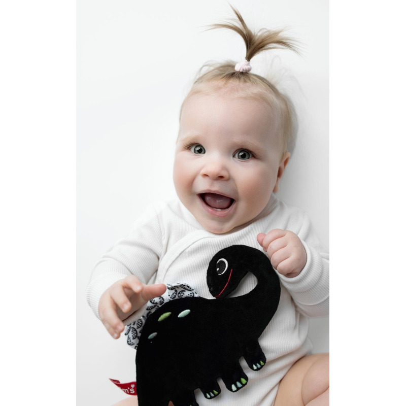 DINOZAUR szeleszcząca szmatka kontrastowa przytulanka