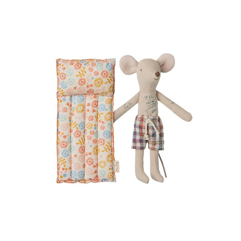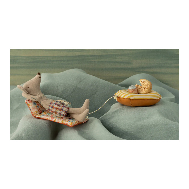 Czas wakacji zbliża się wielkimi krokami! Tata myszka jest gotowy na cały dzień na plaży z mysią rodzinką, aby się lepiej zrelaksować przygotował na plażę dmuchany materac!