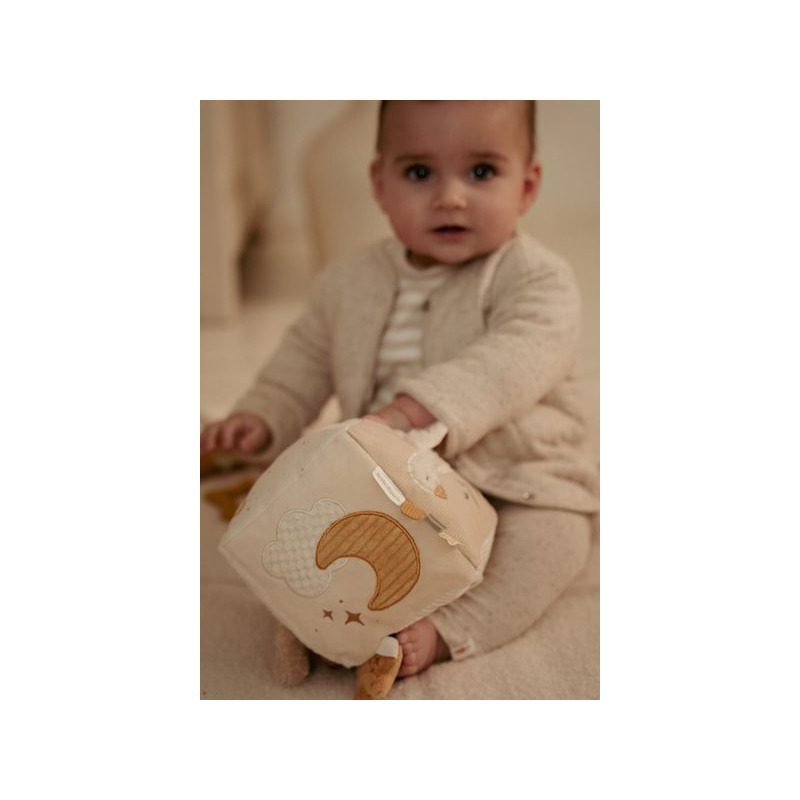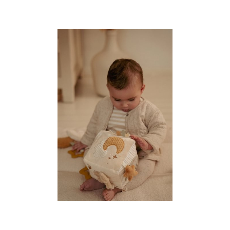 Kostka sensoryczna z kolekcji Newborn Naturals to idealna propozycja dla niemowląt, które dopiero zaczynają poznawać świat. Miękka, lekka i poręczna – doskonale dopasowana do małych rączek. Każda jej strona kryje inne niespodzianki: różnorodne faktury, wystające metki, ciekawe kształty oraz bezpieczne lusterko, które przyciąga uwagę i zachęca do zabawy. To doskonały sposób na stymulację zmysłów i rozwój motoryki już od pierwszych miesięcy życia.