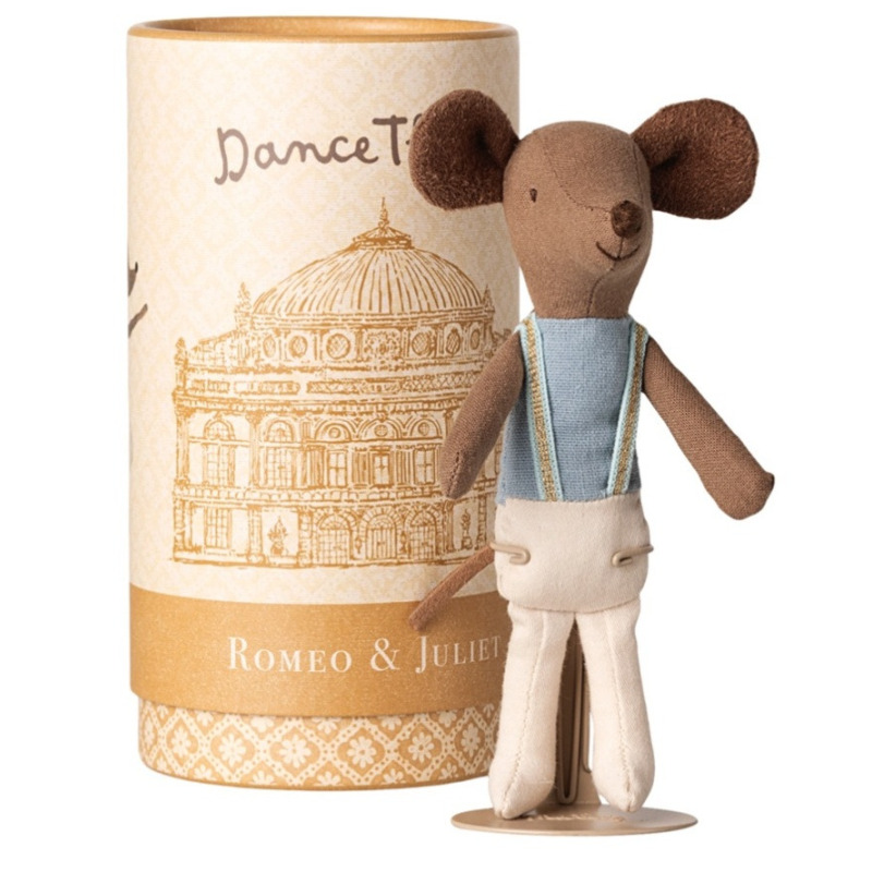 Wyjątkowa myszka w postaci starszego brata - tancerza będzie inspiracją do wielu zabaw fabularnych. Myszka zapakowana jest w piękną tubę ze stojakiem w środku. Kiedy chcesz wyeksponować tancerza w domku, czy na półce, wystarczy postawić go stabilnie na metalowej podstawce.Tancerz wykonany z najwyższą starannością. Gotowy do tańca w towarzystwie pozostałych, małych przyjaciół.