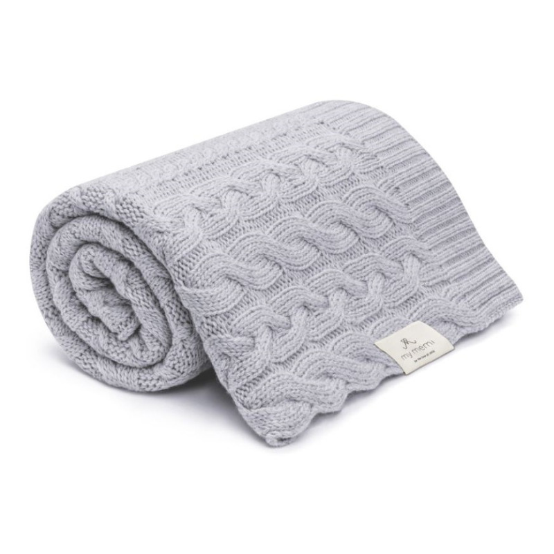 GREY kocyk wełniany merino premium collection warkocz 80 x 100 cm