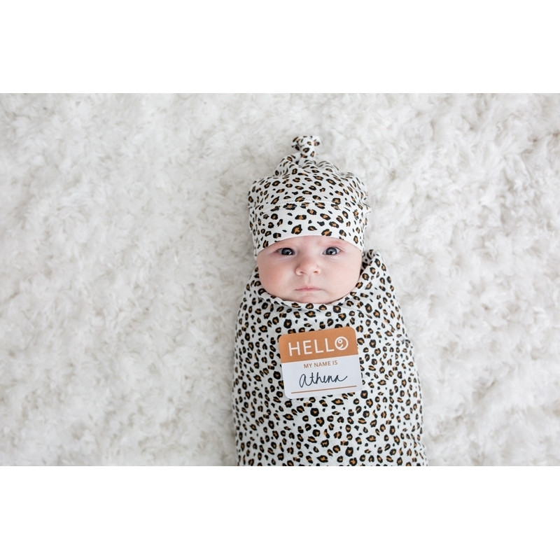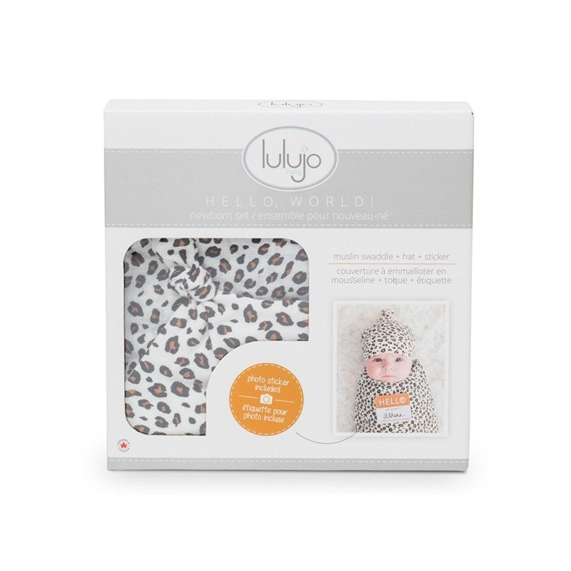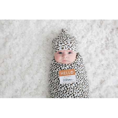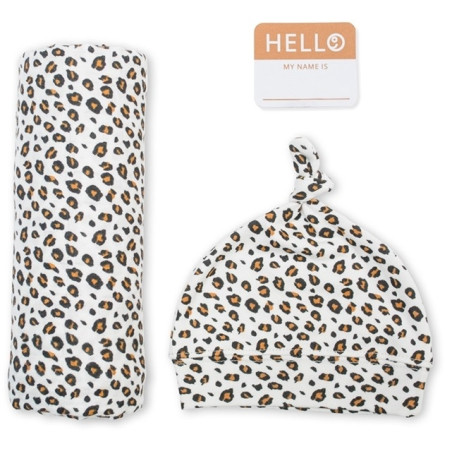 LEOPARD zestaw kocyk bambusowy 120x120 cm i czapka