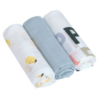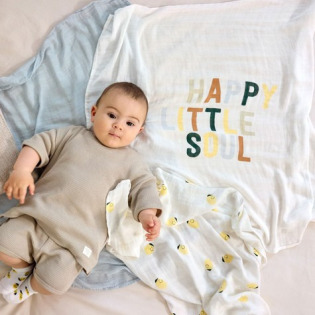 W skład zestawu wchodzą produkty wykonane z bawełny muślinowej,