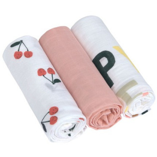 W skład zestawu wchodzą produkty wykonane z bawełny muślinowej,