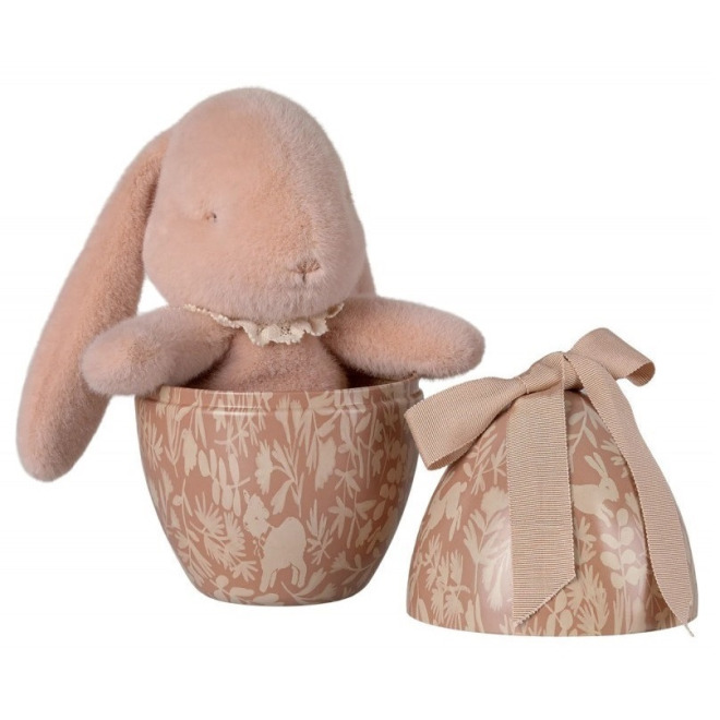 W środku jajka znajduje się pluszowy króliczek z kolekcji wielkanocnej Maileg.