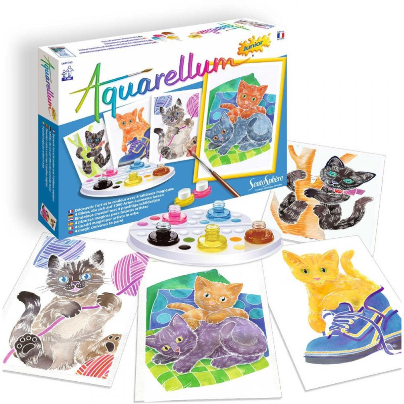 Zestaw 4 obrazków z kotkami do malowania techniką Aquarellum