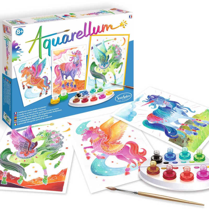 JEDNOROŻCE I PEGAZ obrazki do malowania z farbkami Aquarellum