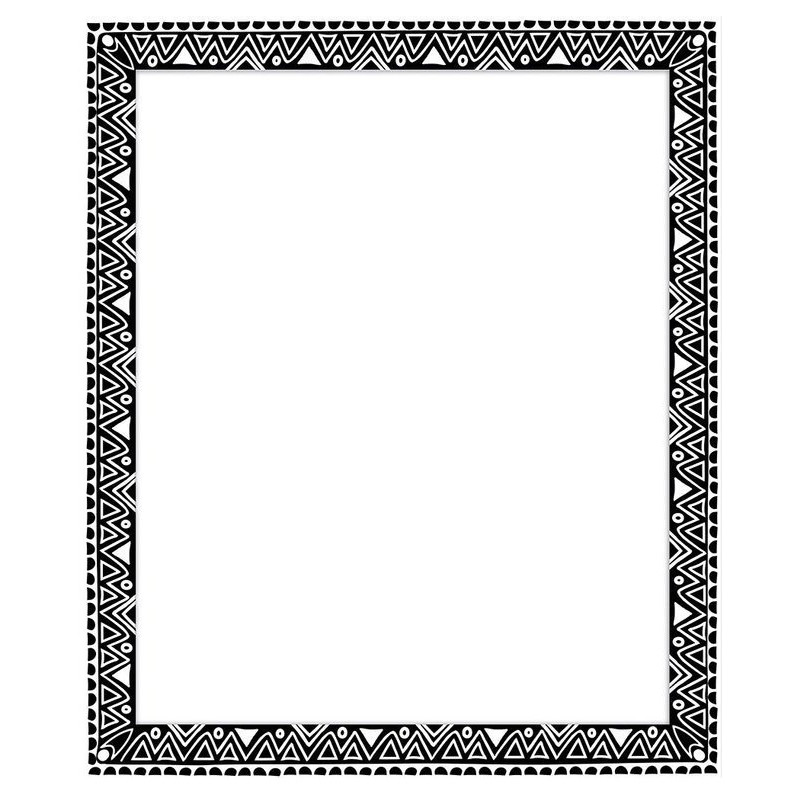 na czarnym tle białe wzory z postaciami zwierząt: