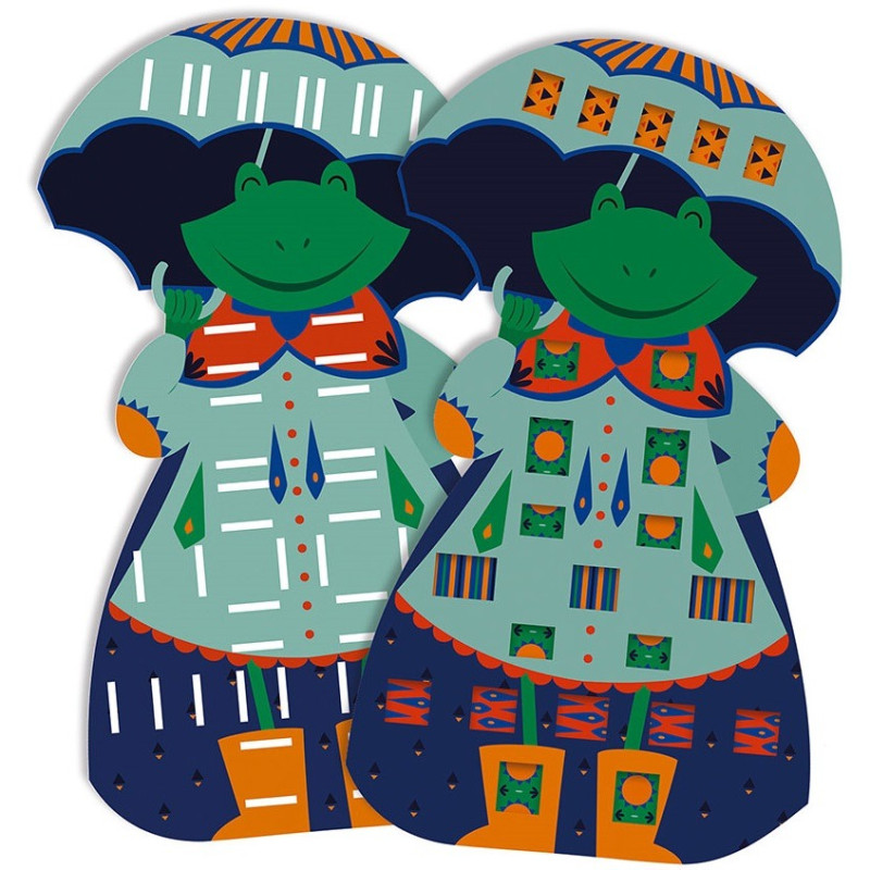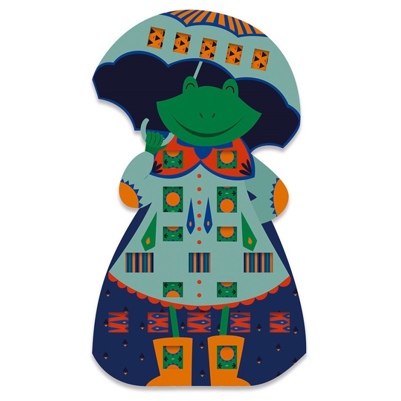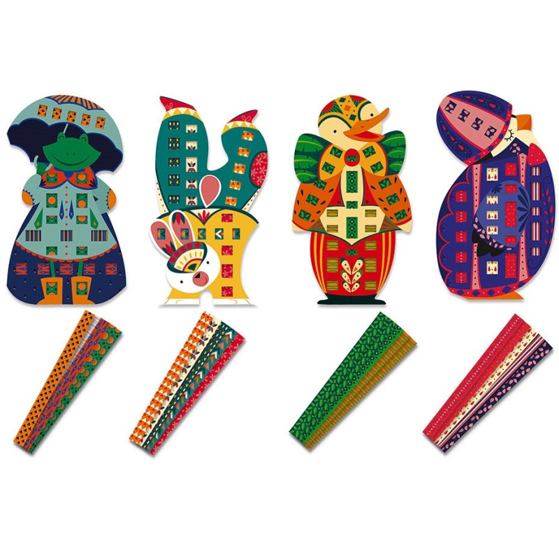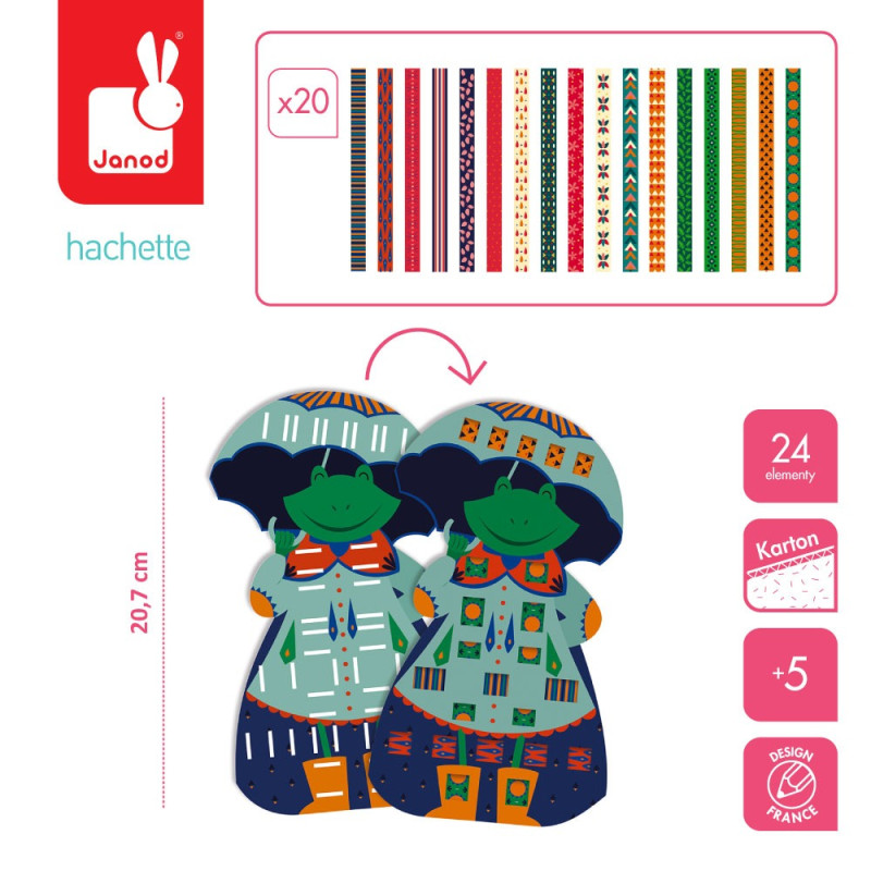 żabę i królika, które można ozdabiać dołączonymi paskami wzorzystego papieru.