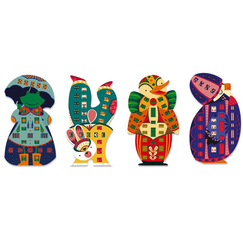 zawiera 4 kolorowe plansze-postaci: pingwina, kaczora,