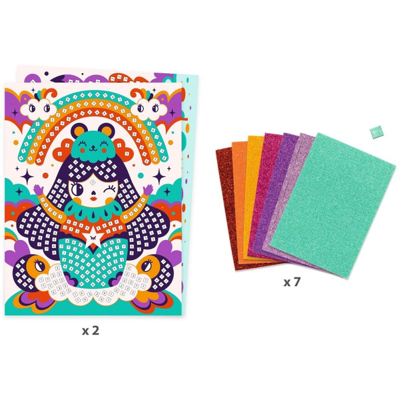 Zestaw do tworzenia mozaik z kolorowych brokatowych kwadratów,