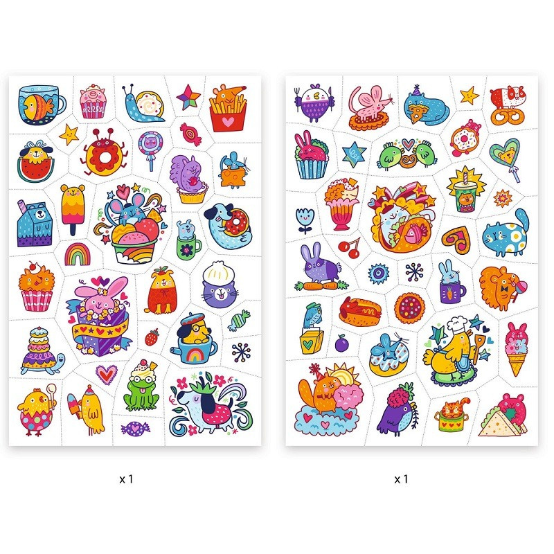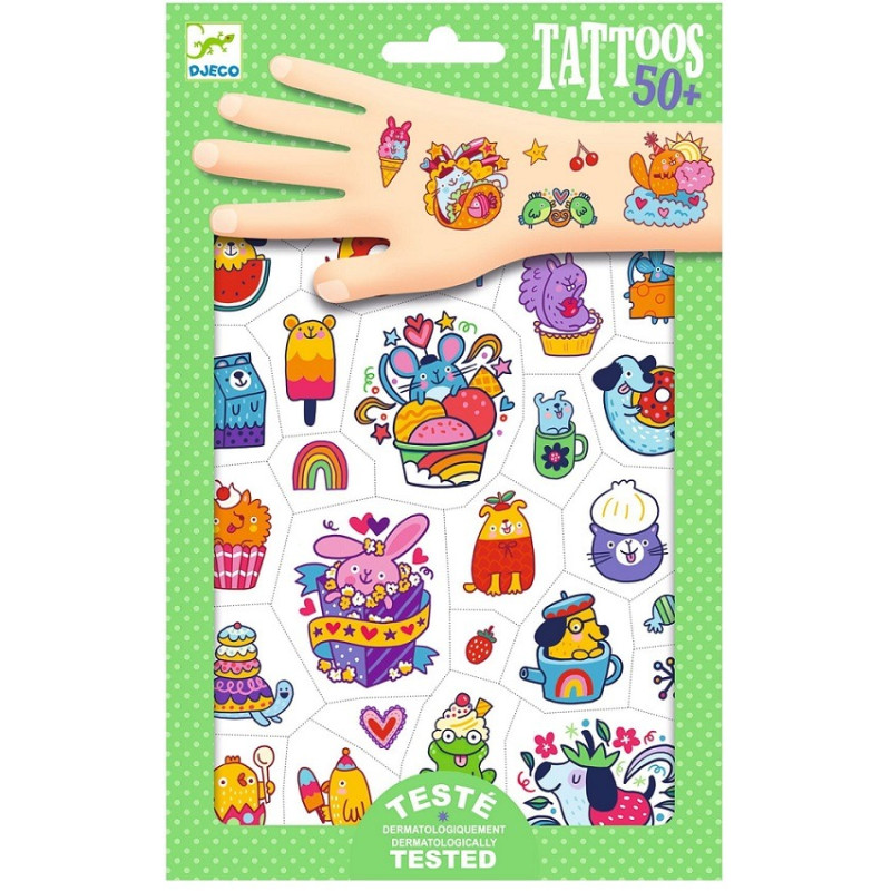 W zestawie znajdują się tatuaże z motywem kolorowych zwierzątek