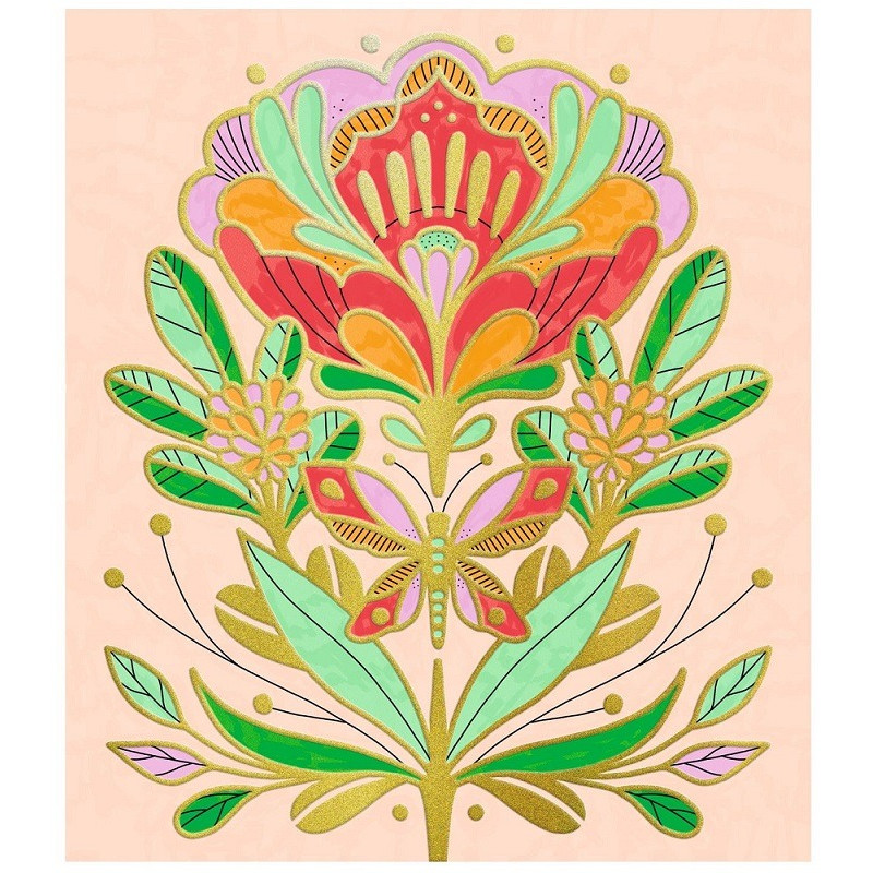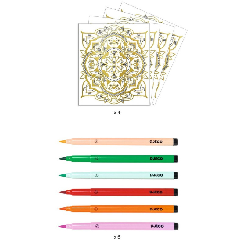 - 4 karty z wytłoczonymi złotymi konturami, ułatwiającymi kolorowanie