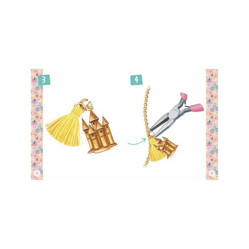 - 5 ozdób: dzbanek, różdżka, lusterko, wróżka, zamek oraz 3 chwościki i łańcuszek