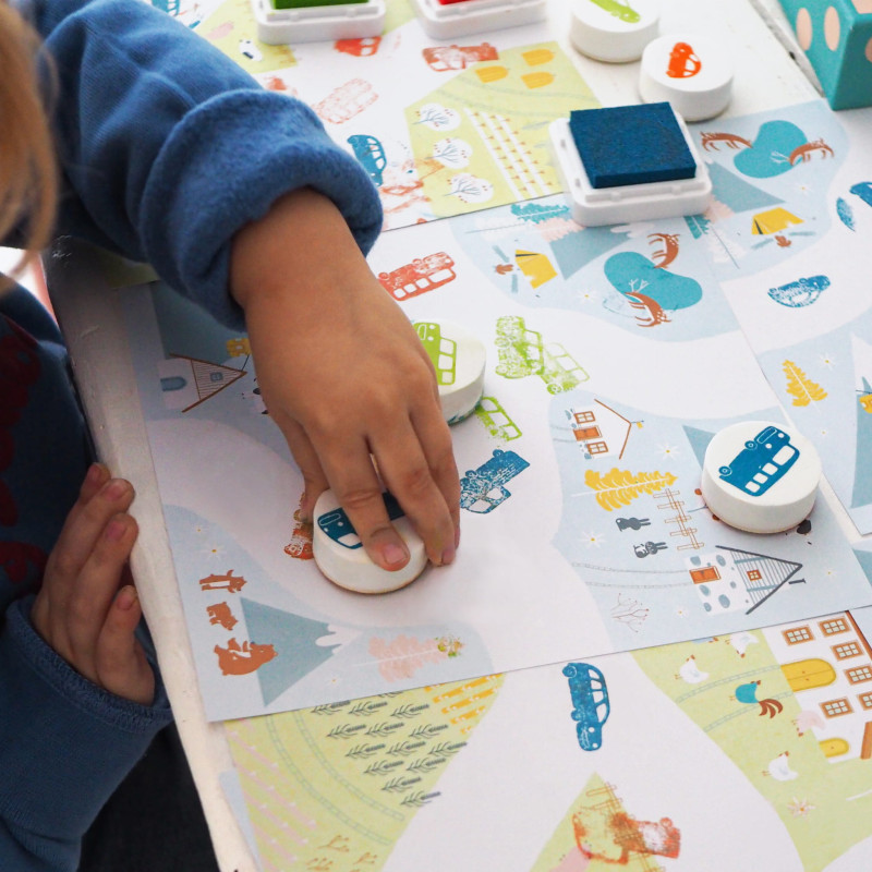 Zestaw do tworzenia obrazów za pomocą załączonych stempelków.