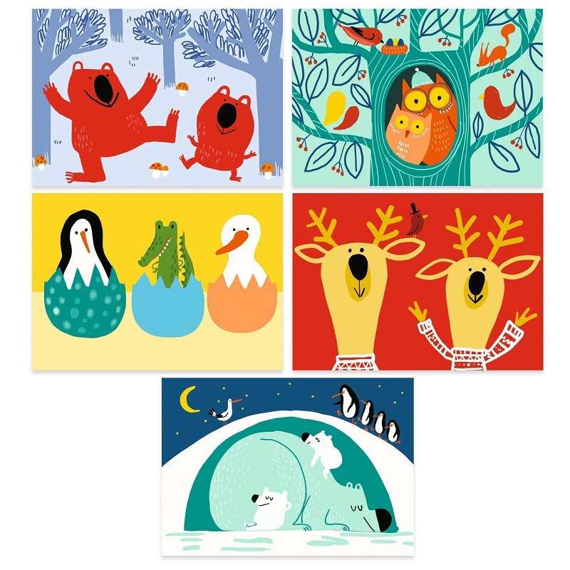 Karty w zestawie przedstawiają różne gatunki zwierząt.