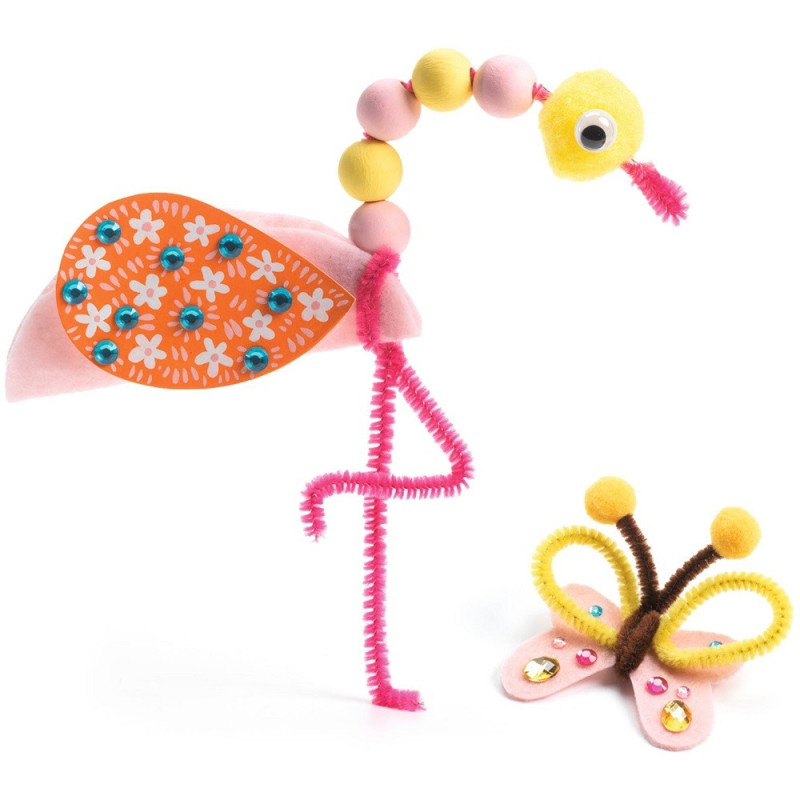 - 10 wcześniej wyciętych ilustrowanych kart, 18 arkuszy z filcu, 6 piankowych arkuszy, 24 drewniane koraliki,