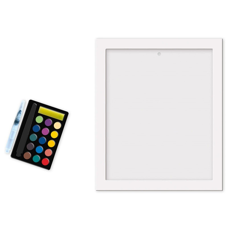W palecie akwareli znajduje się 15 kolorów i mała gąbka do pochłaniania nadmiaru wody.