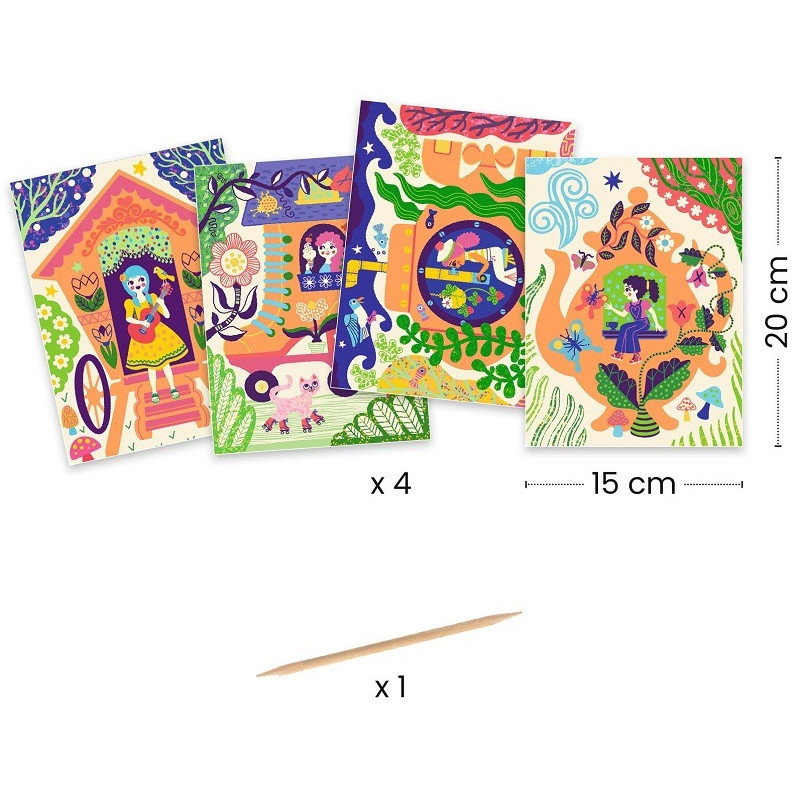 Zestaw 4 zdrapywanek na folii zachwyci małych artystów.