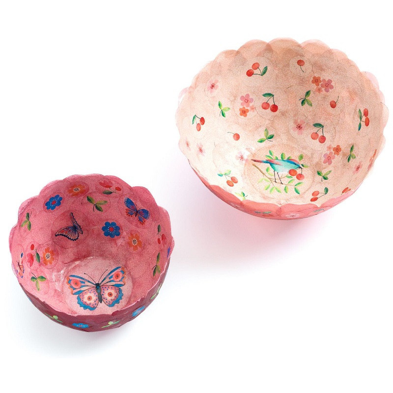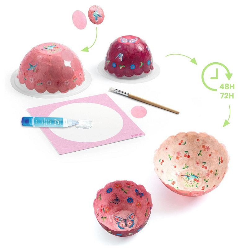 Zestaw do samodzielnego stworzenia różowych, papierowych miseczek.
