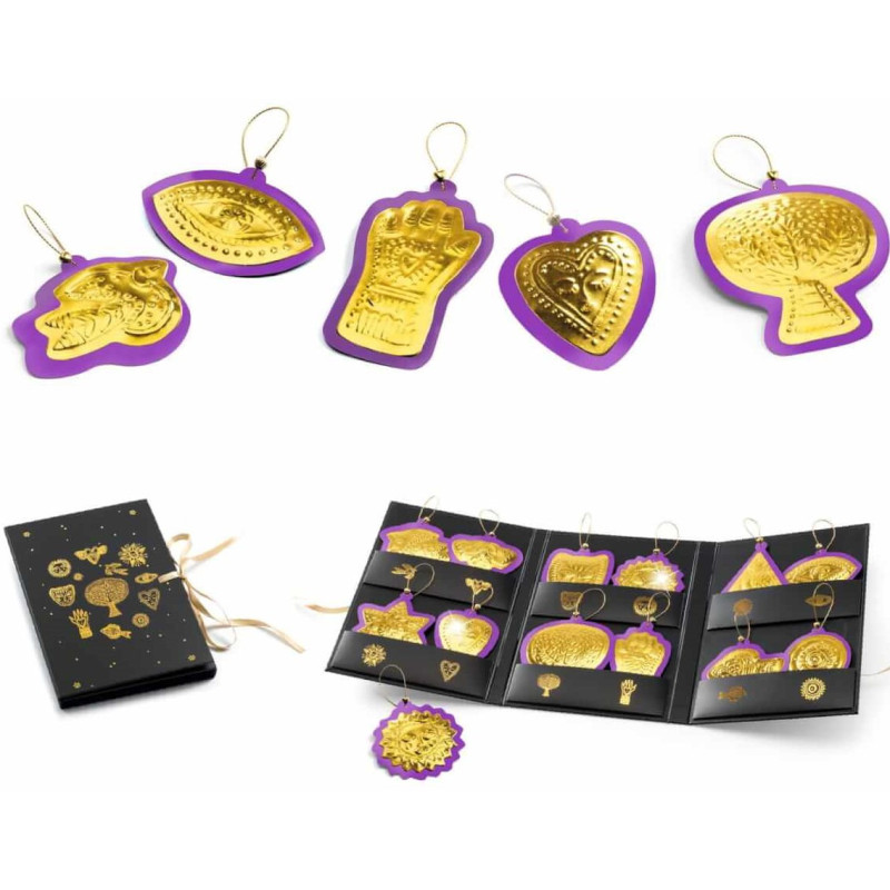 Oryginalny zestaw DIY polegający na wytłaczaniu na zimno do stworzenia 12 amuletów przynoszących szczęście. Przejedź tam i z powrotem po ilustracjach wydrukowanych na odwrocie metalicznych naklejek, a one, jak za dotknięciem czarodziejskiej różdżki,