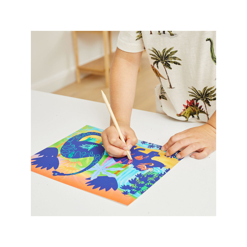 Witaj w prehistorycznym świecie zabawy i kreatywności! Dzięki kolorowym, pięknie ilustrowanym kartom zabawa w wydrapywanie będzie nie prędko się znudzi!