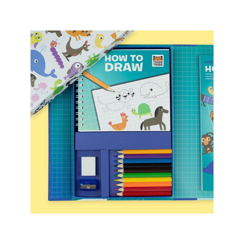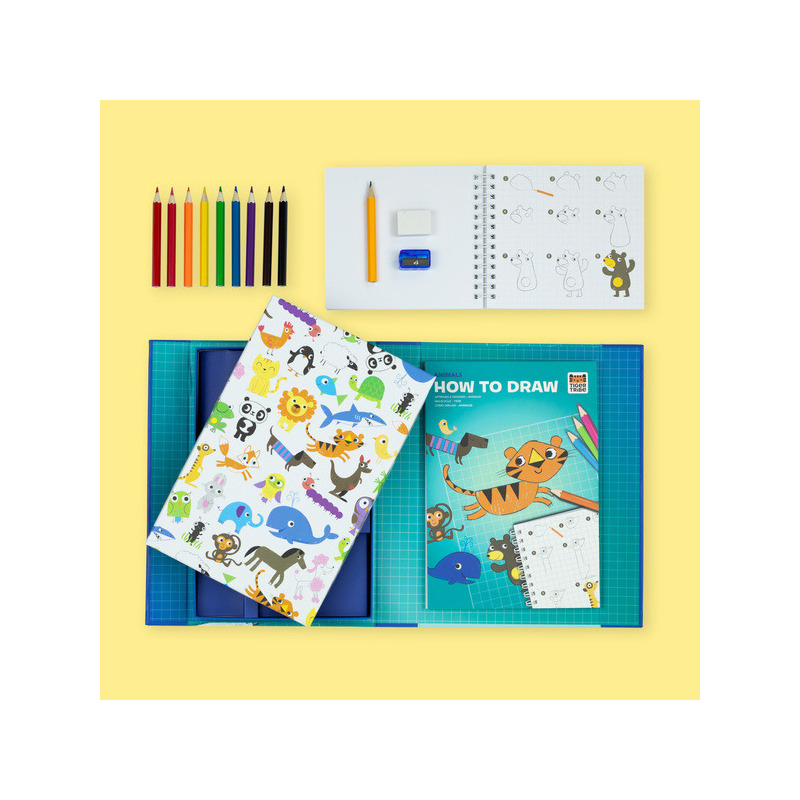 Zestaw "Jak rysować - Zwierzęta" to odświeżona wersja uwielbianego przez dzieci zestawu który zawiera wszystko, czego mali artyści potrzebują, aby rysowanie stało się łatwe!