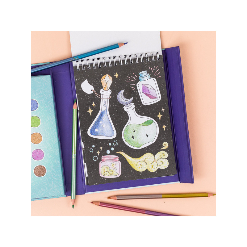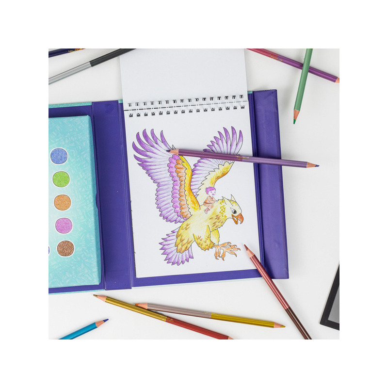 Zestaw do Rysunku – Metaliczne Kredki to kreatywny zestaw do kolorowania z motywami smoków, magicznych mikstur i kryształów!