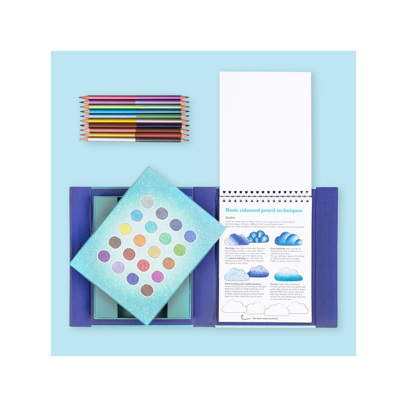 NAUKA BLENDOWANIA I CIENIOWANIA zestaw do rysunku kredki metaliczne