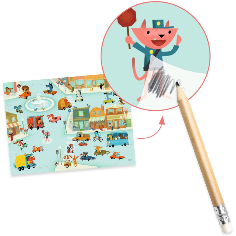 Jak się bawić kalkomanią? To proste! Przykładamy kalkomanię do planszy z tłem i rysując po folii ochronnej przyklejamy (odciskamy) wybrany obrazek na kartonie.