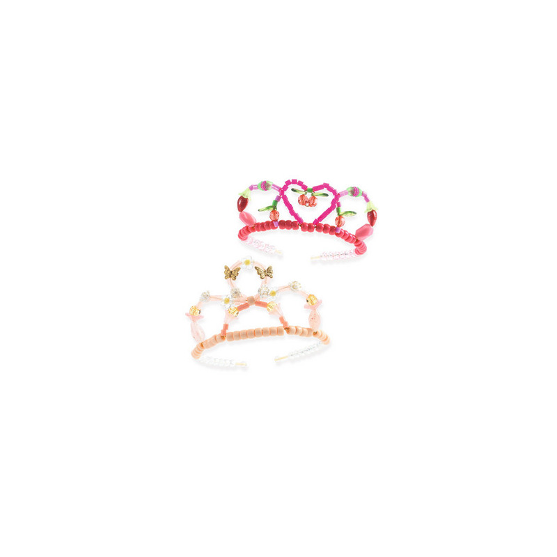 Zestaw dla prawdziwych księżniczek, umożliwiający stworzenie dwóch tiar z dostępnych w zestawie koralików. Złote opaski czekają na ozdobienie aż 240 elementami! Zestaw zawiera wszystkie niezbędne do wykonania zjawiskowych ozdób akcesoria: złote opaski, elastyczne druciki do nawlekania o długości 6 m oraz koraliki w różnych kształtach (kwiatki, listki, motylki).