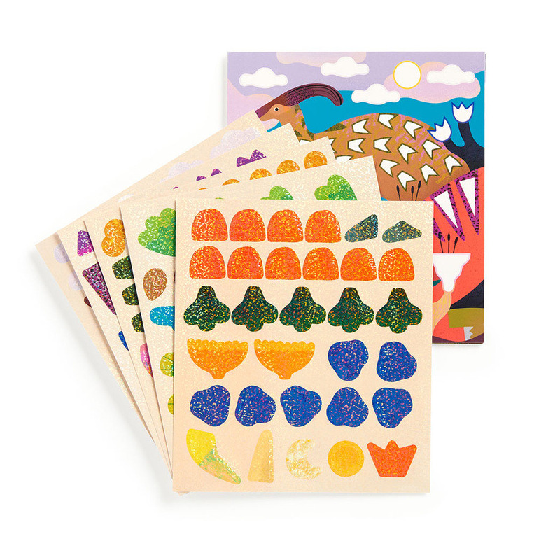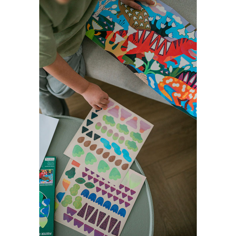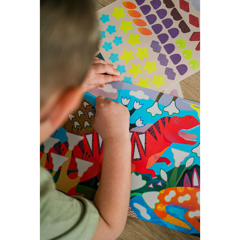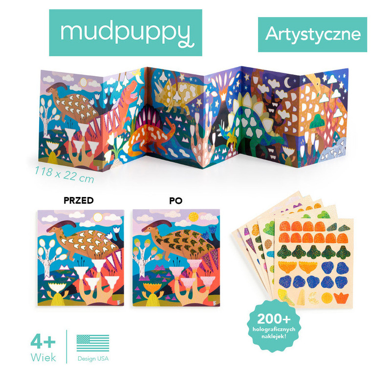 KRAINA DINOZAURÓW zestaw do wyklejania Naklejki holograficzne 200+ szt. z plakatem Mudpuppy 4+