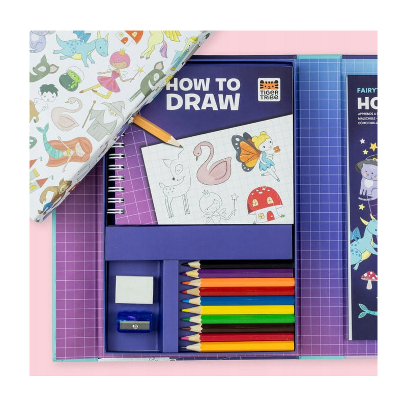 Baśniowa Fantazja od Tiger Tribe to zestaw który ma wszystko, czego potrzebujesz, aby rysowanie stało się łatwe! Postępuj zgodnie z prostymi instrukcjami krok po kroku, a w mgnieniu oka stworzysz wspaniałe dzieło sztuki. Opakowanie tego zestawu do kreatywnej aktywności zostało specjalnie zaprojektowane z przegródkami do przechowywania, aby zachować bezpieczeństwo kredek i stworzonych własnoręcznie dzieł sztuki, dzięki czemu idealnie nadaje się do przenośnej i bezproblemowej zabawy.