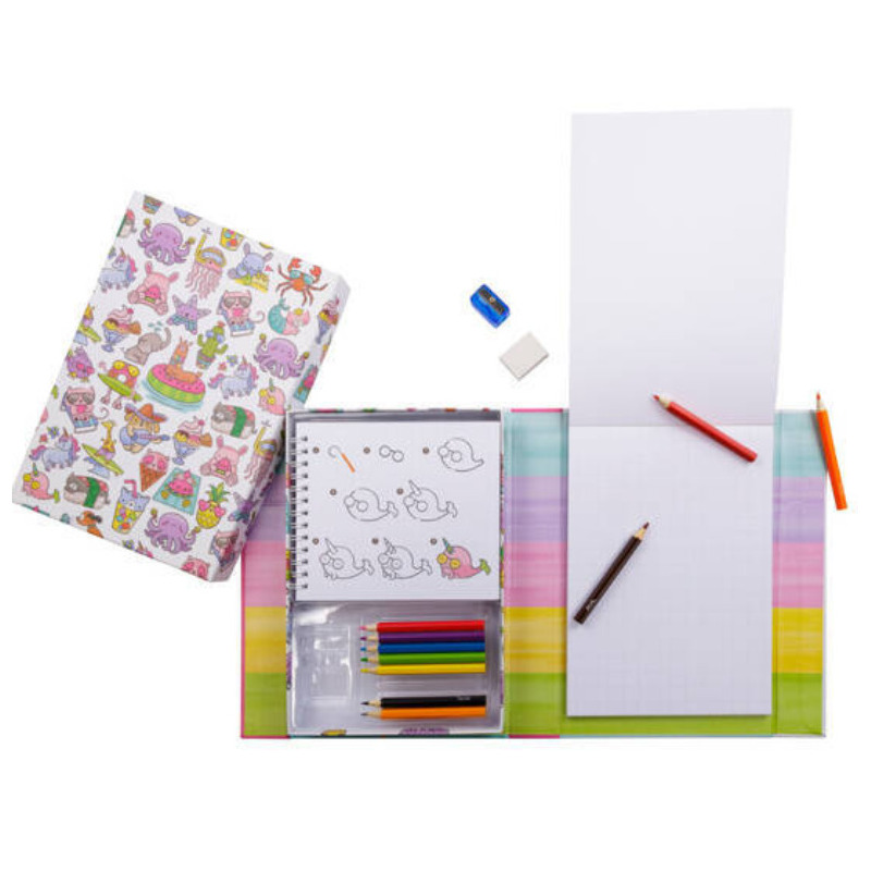 Zestaw który ma wszystko, czego potrzebujesz, aby rysowanie stało się łatwe! Postępuj zgodnie z prostymi instrukcjami krok po kroku, a w mgnieniu oka stworzysz wspaniałe dzieła sztuki. Opakowanie tego zestawu do kreatywnej aktywności zostało specjalnie zaprojektowane z przegródkami do przechowywania, aby zachować bezpieczeństwo kredek i stworzonych własnoręcznie dzieł sztuki, dzięki czemu idealnie nadaje się do przenośnej i bezproblemowej zabawy.