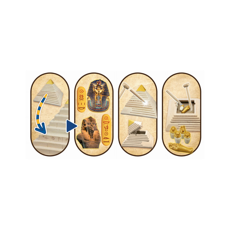 Rozszyfruj hieroglify wyryte na czterech ścianach i znajdź tajny mechanizm dzięki któremu otworzysz piramidę. Następnie wykop pięć starożytnych egipskich skarbów za pomocą narzędzi. Wyeksponuj swoją piramidę i wykopane skarby w swoim pokoju.