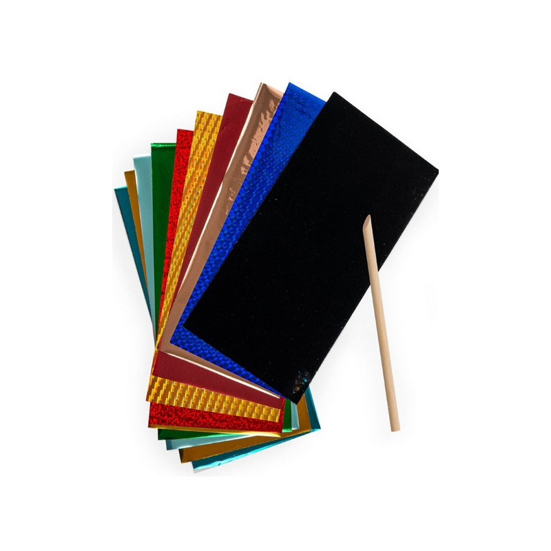 ZESTAW ZAWIERA: 6 ilustracji, 10 arkuszy z folią transferową oraz 1 drewniany patyczek.