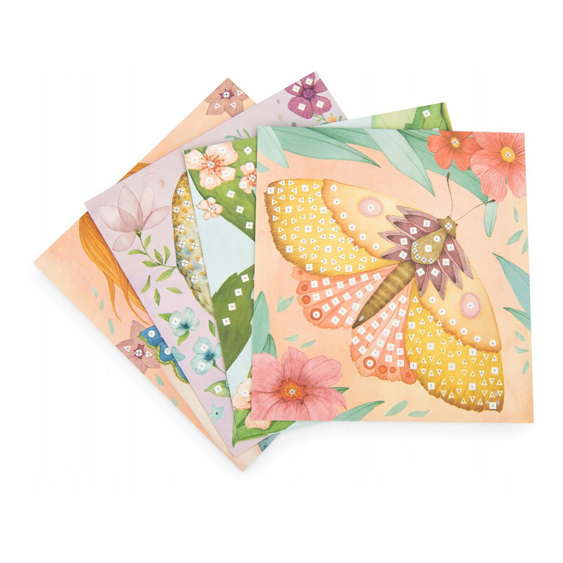 Przepiękne ilustracje z kolekcji Les Rosalies do ozdobienia malutkimi elementami samoprzylepnymi. Grafiki przedstawiają zachwycające zwierzęta w pastelowych odcieniach: majestatyczną sowę, fascynujące ważki i inne. W zestawie znajduje się 5 kart do ozdobienia, 10 arkuszy z połyskującymi naklejkami oraz 1 arkusz metalicznych diamencików, które dodadzą dodatkowego blasku wykonanym mozaikom. Na ilustracjach zaznaczone są obszary do wyklejenia z numerami. Każdy arkusz naklejek posiada przypisaną cyfrę.